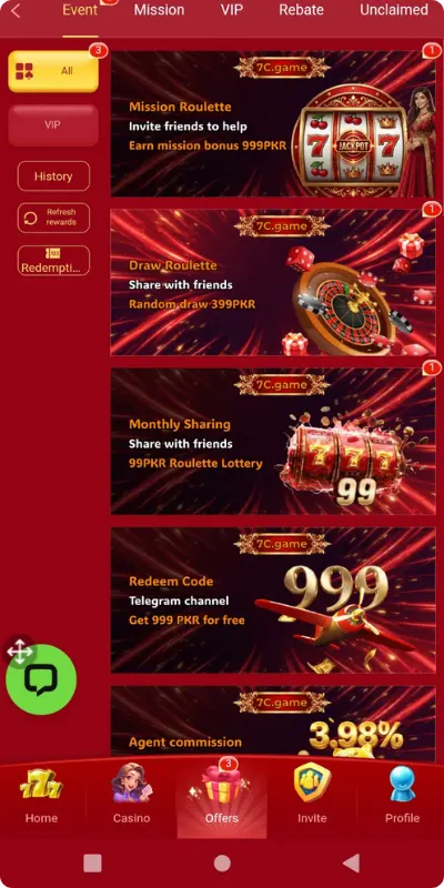 Being able to earn some bonus money every now and then is one of the main reasons that convince people to try out a new game or platform such 7C Game.