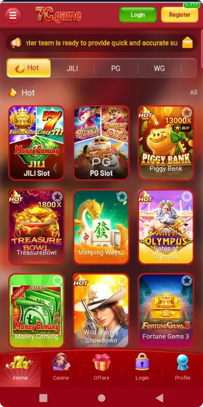 7C Game offers a mobile gaming platform for users not only to have fun with mini games but also to get real money. Many types of games are offered on the app: slot, cards, prediction, and other casual games.