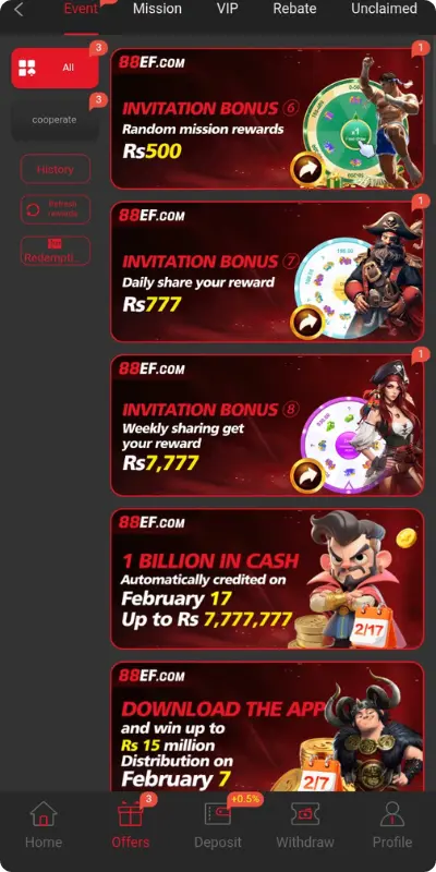 One of the strongest features of 88EF platform is its clean and simple interface.The app offers smooth navigation, organizes menus clearly, and helps first-time users easily understand how it works without any confusion.