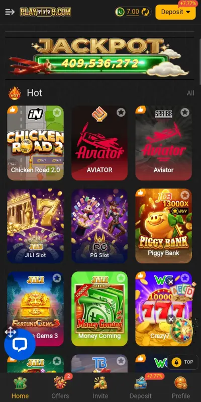 Play7778 Game is one of the latest earning platforms that not only features a clean and attractive design but also keeps its interface extremely simple and user-friendly. The layout looks very solid and it is so easy to understand that even a first time user will be able to navigate it easily. It offers really interesting games such as Super Ludo, Star Games, Chicken Run, Football, and many others that will, no doubt, keep you entertained.