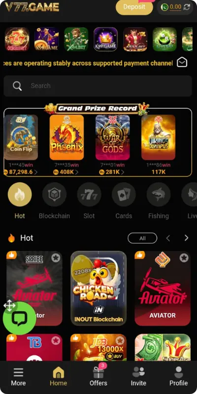 With most users accessing games through smartphones, mobile optimization is essential. V77 APK is fully optimized for mobile devices, ensuring stable performance on Android systems. Buttons are well-spaced, text is readable, and gameplay remains responsive across different screen sizes.