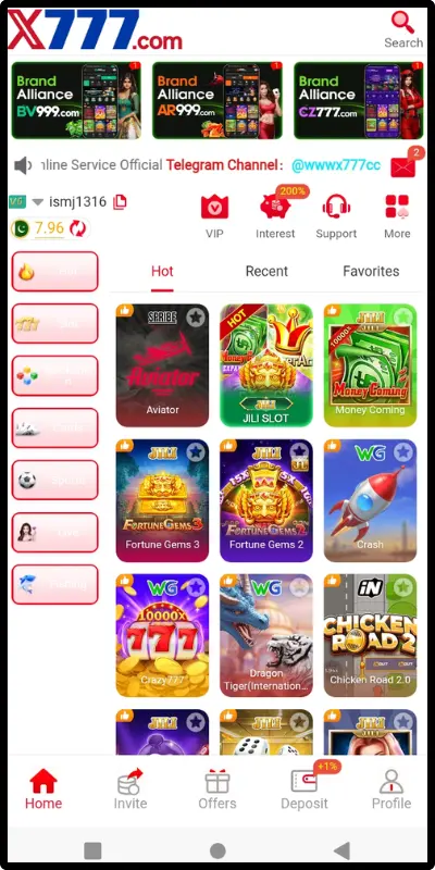 X777 Game is an online card-style gaming app that allows users to play slot games with real money and is mainly compatible with Android devices. Players can access classic slot machine games, different types of card games, color or number guessing games, and other chance-based formats. The app operates through an electronic wallet system, where users must first create an account and deposit funds before participating in any game. Winnings are credited back to the user’s e-wallet balance and can be withdrawn according to the platform’s rules and regulations.